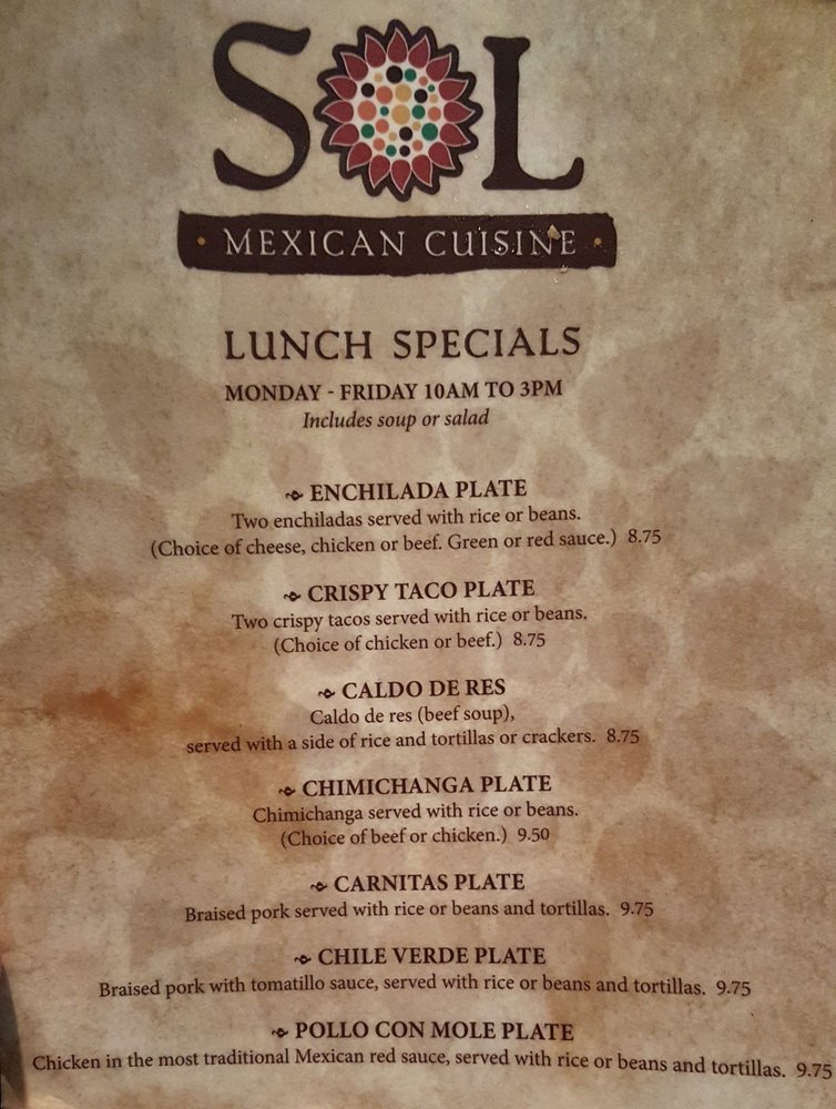 Sol Mexican Cuisine Menu (Update 2025)